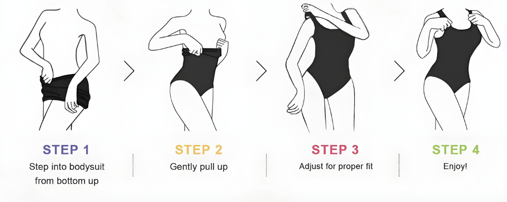Slide the bodysuit up from your legs. This prevents pulling and ensures it molds smoothly to your silhouette.